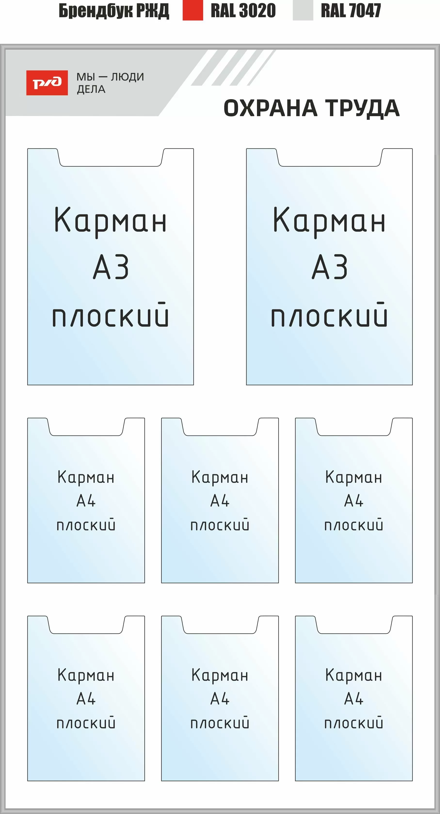 Наша компания более 20 лет мы работает с железнодорожной отраслью как надёжный поставщик и производитель. Для нас особенно ценны проекты, выходящие за рамки стандартных заказов и становящиеся частью корпоративной культуры крупнейшего работодателя страны. Недавно мы завершили поставку серии информационных стендов для объектов ПАО «РЖД», выполненных в единой концепции бренда работодателя — «Мы — люди дела». Это не просто обновление оформления: мы воплотили ценности уважения к профессионалу в повседневную рабочую среду.О концепции