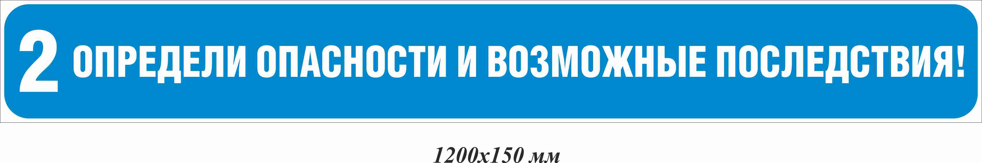 Наклейка информационная на ступени 2, Определи опасности и возможные последствия! 1200х150 мм, материал пленка ПВХ самоклеящаяся, форма прямоугольная края закругленные, цвет белый/синийАрт. IT-1200x150-PS1