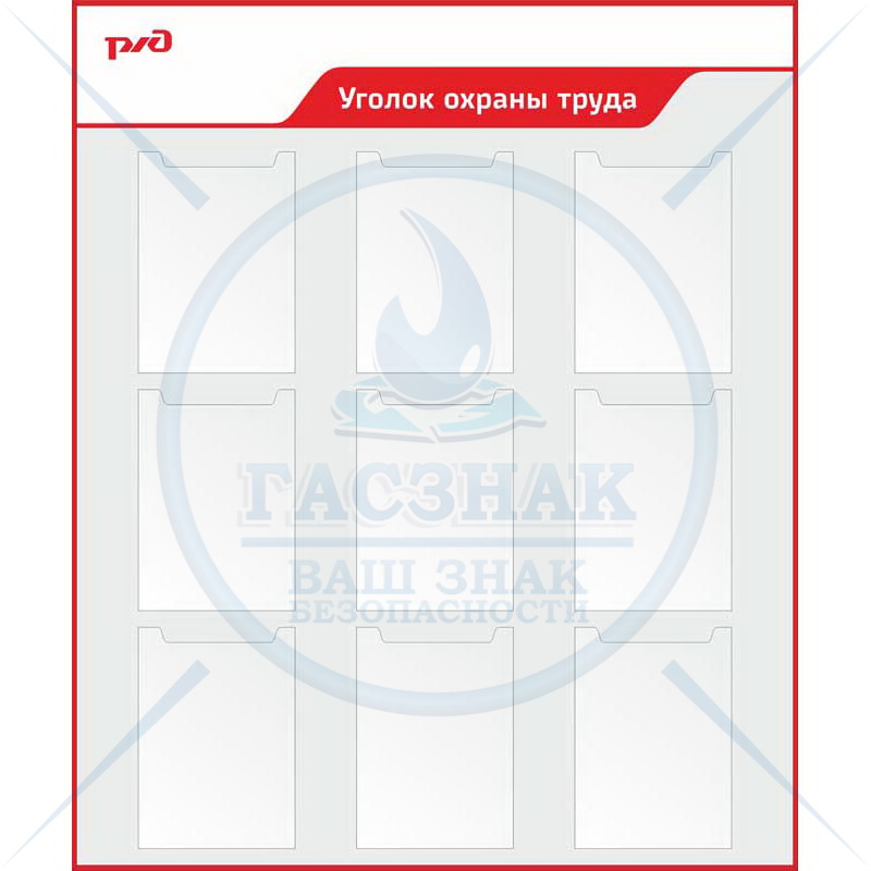 Стенды по охране труда для ОАО РЖД Вводный инструктаж по ОТ, профиль Nielsen, 3 плаката А2, 3 плоских кармана А4, 2 объёмных кармана (Пластик ПВХ 4 мм, алюминиевый профиль; 1400х1200)