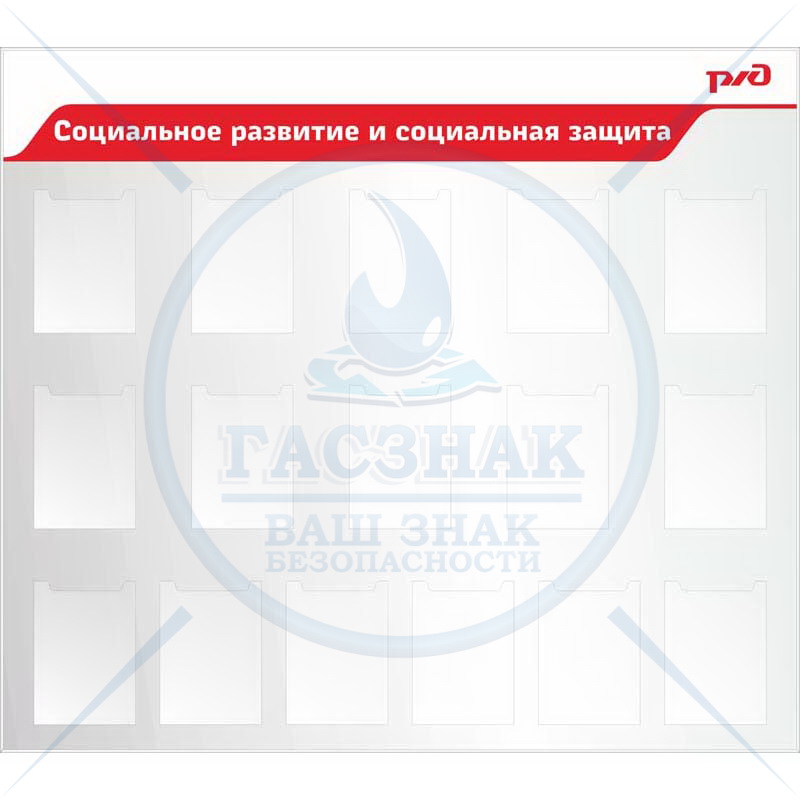 Стенд охрана труда РЖД, 4 объемных кармана А4 (600х1100; Пластик ПВХ 4 мм, алюминиевый профиль; )