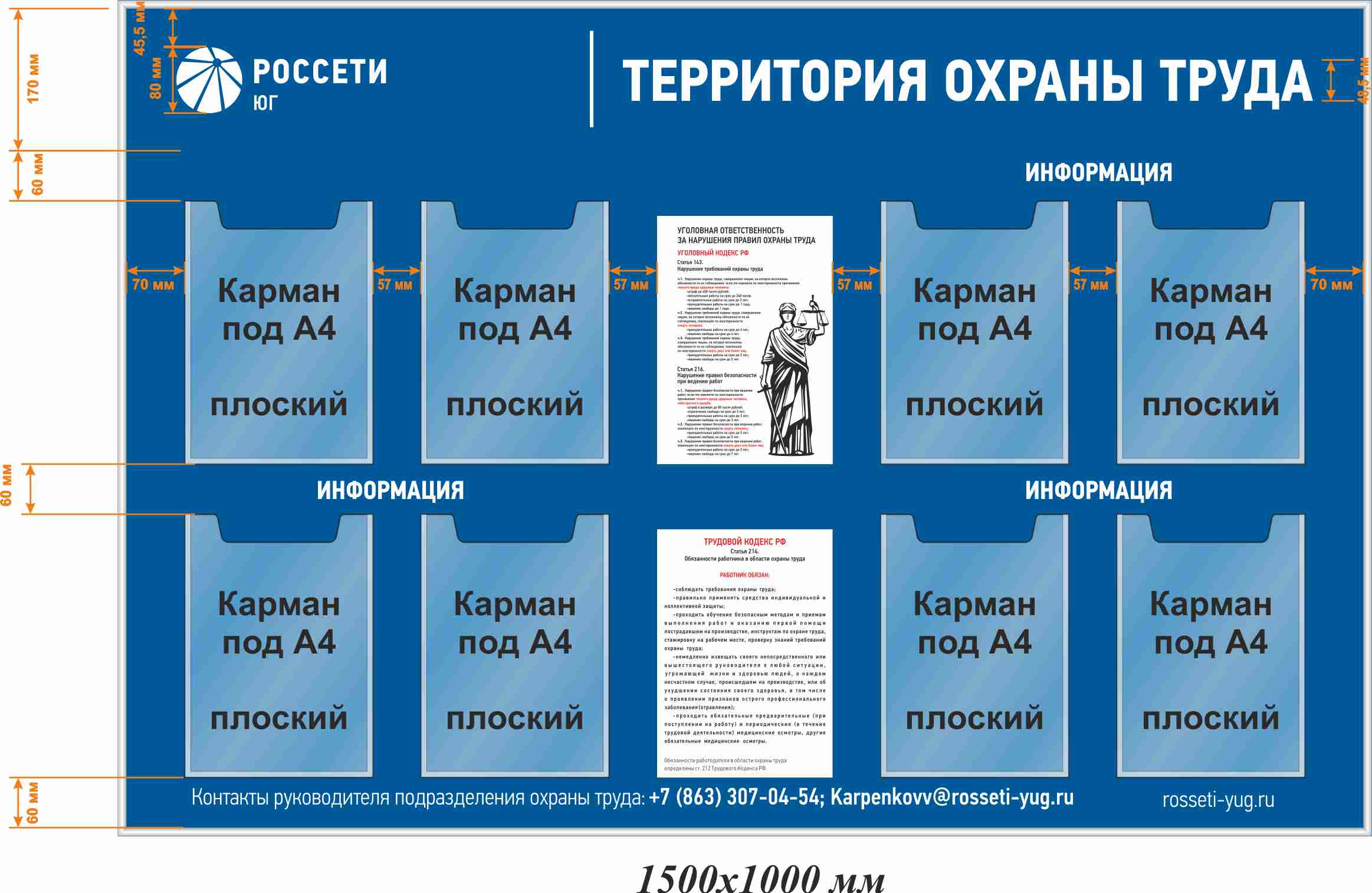 Территория охраны труда РОССЕТИ (8 плоских вертик. карманов А4 на скотч, 2 плаката А4 Гасзнак)