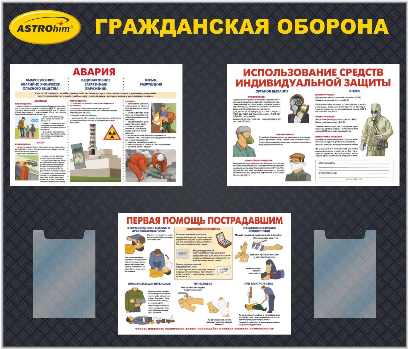 Стенд Гражданская оборона и ЧС. (9 плакатов А3) (1400х1200; Пластик ПВХ 4 мм, алюминиевый профиль; )