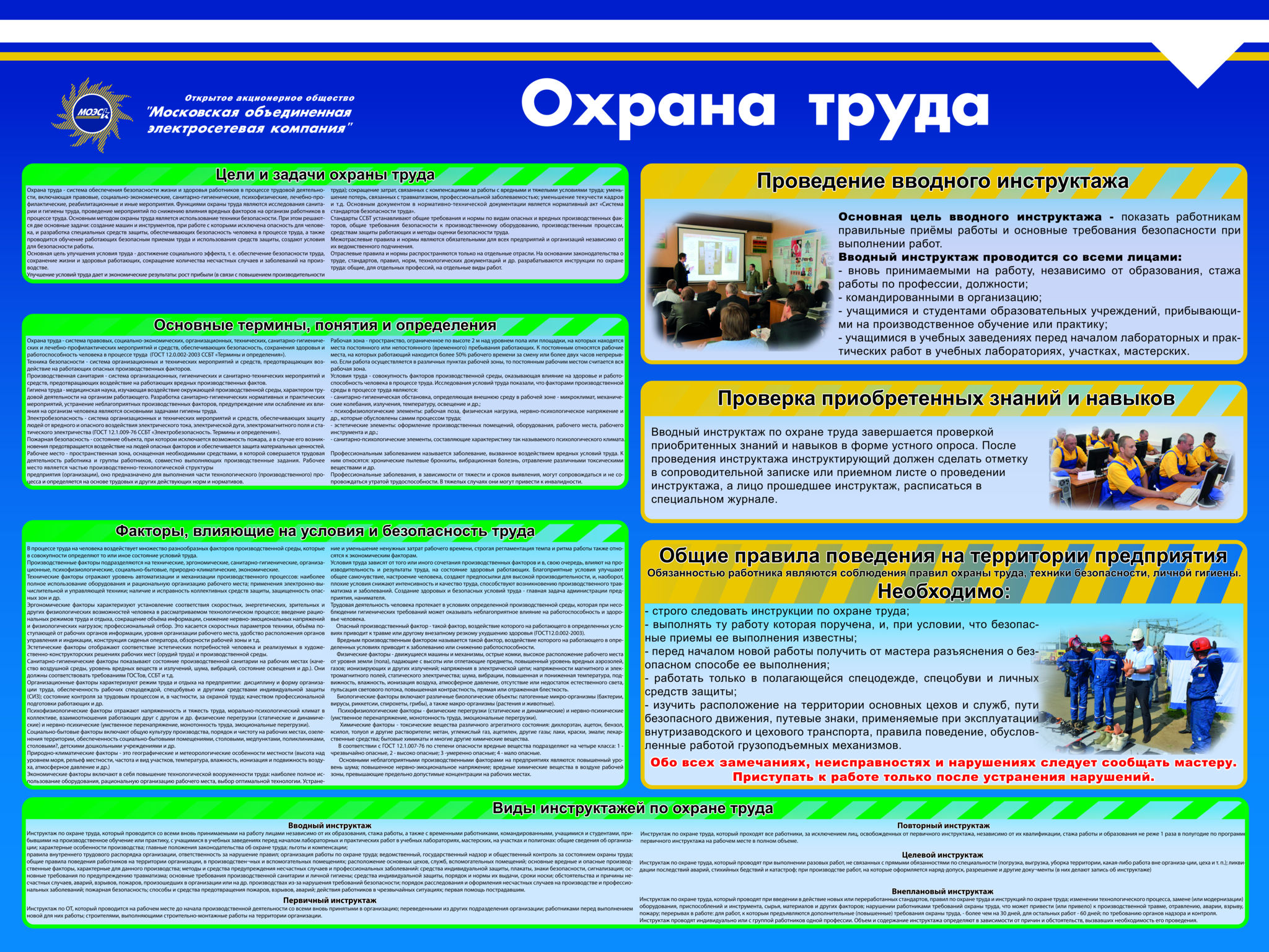 Стенд Охрана труда 1 карм. А3 гориз., 4 карм. А4 объемн. , 6 карм. А4 плоск. (1400х950; Пластик ПВХ 4 мм, профиль пластиковый белый)